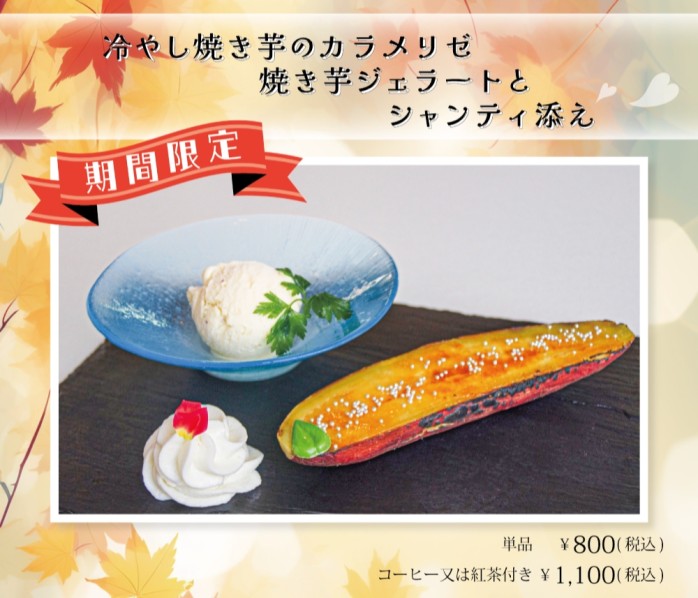 生クリームのなめらかさと焼き芋ジェラートのひんやりとした甘みを交互に味わえば、またひと味違う贅沢な美味しさが広がります。